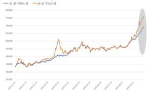 금융감독원이 국내 금을 기초자산으로 하는 금융상품 투자에 대해 소비자경보를 발령한다고 17일 밝혔다.최근 국내 금 가격과 국제 금 가격이 연일 상승세를 보이고 있는 가운데 국내 금 가격이 국제 금 가격을 13.2%로 큰 폭 상회하고 있다.국내 금 가격은 제한적 수급 요인과 정보불완전성 등 다양한 요인에 의해 일시적으로 국제 금 가격과 괴리가 발생할 수 있다. 하지만 일물일가의 법칙에 의해 국내 금 가격과 국제 금 가격은 결국 수렴할 수밖에 없는 구조다. 금에 투자하는 상품의 기초자산은 국내 금가격과 국제 금가격으로 나뉜다.16일 기