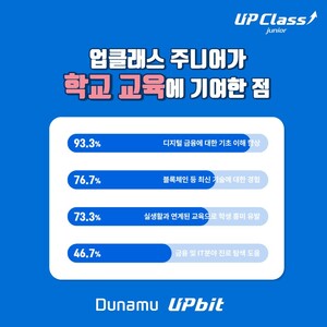 두나무는 올해 1학기 ‘업클래스(UP Class) 주니어’를 마치고 16일 그간의 성과를 발표했다.업클래스 주니어는 두나무의 세대별 맞춤형 금융 교육 ‘업클래스’의 일환이자 2022년 5월부터 디지털 금융에 대한 청소년 이해 증진과 미래 인재 육성을 위해 운영해 온 교육 프로그램 ‘두니버스’의 리브랜딩이다. 이번 리브랜딩은 국민 디지털 금융 리터러시 확산에 기여하겠다는 업클래스의 지향 아래 청소년부터 청년·시니어까지 전 세대를 아우르는 디지털 금융 교육 체계를 구축하기 위해 진행됐다.업클래스 주니어는 올해 1학기까지 3년간 135개