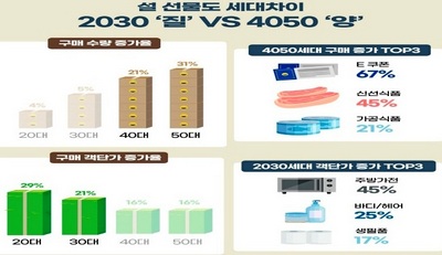 [이지경제=김보람 기자] 설 선물 준비에 2030세대는 지난해보다 더 비싼 제품을, 4050세대는 더 많은 양을 구매한 것으로 나타났다.