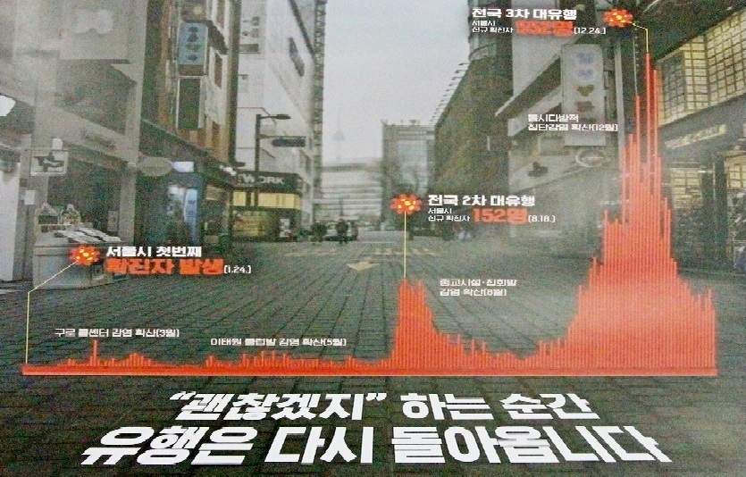 다만, 이는 평일대비 절반 수준으로 감소하는 주말 검사량이 반영된 확진자 수치다. 3차 유행 재확산이나 감소세 전환 여부는 평일 검사 결과가 나오는 오는 24일(수요일) 이후를 주목할 필요가 있다는 게 방역당국 설명이다.