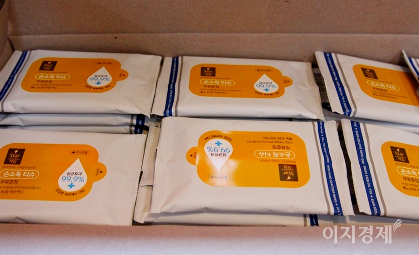 서울 여의도 본점을 비롯해 1000곳에 육박하는 전국 지점이 인근 식당 등 다중시설에 99.9% 살균효과가 있는 위생 물티슈를 제공하고 있는 것이다.