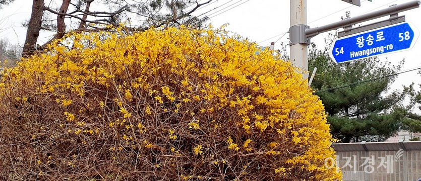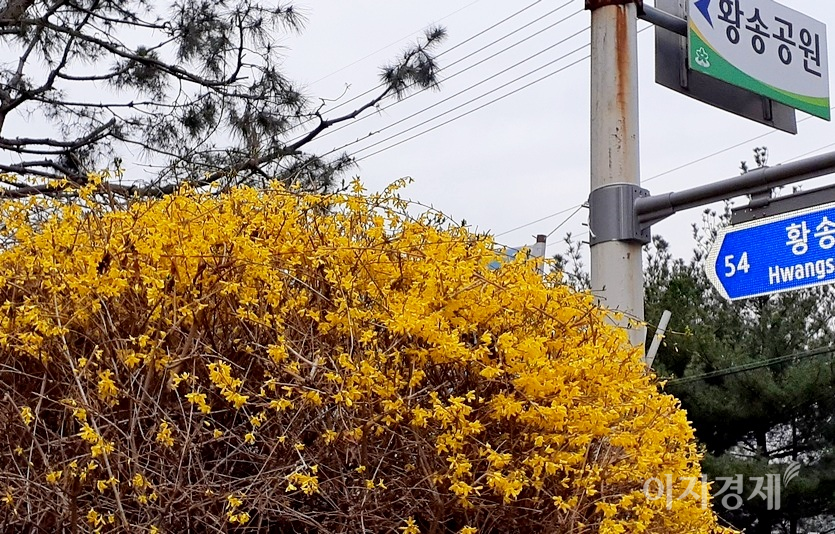 경기도 성남시 중원구 (위부터)황송공원과 관내 아파트단지에 봄꽃인 개나리와 목련이 만개했다. 나무에서는 녹색 잎이 고개를 내밀고 있다. 사진=김보람 기자