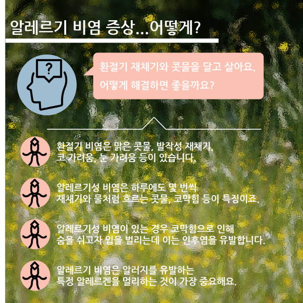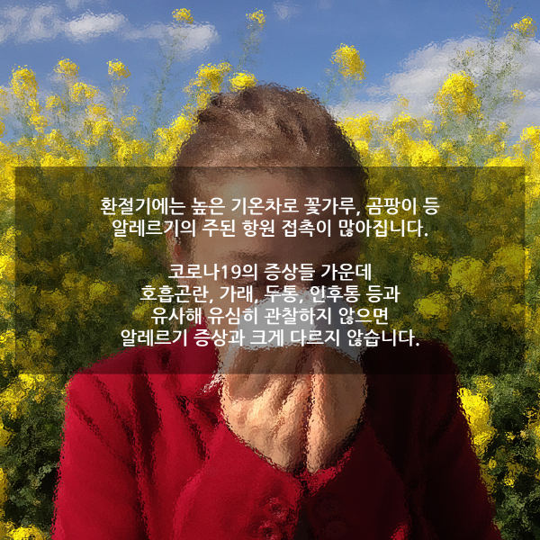 [이지경제 = 이민섭 기자] 환절기에는 높은 기온차로 꽃가루, 곰팡이 등 알레르기의 주된 항원 접촉이 많아집니다. 코로나19의 증상들 가운데 호흡곤란, 가래, 두통, 인후통 등과 유사해 유심히 관찰하지 않으면 알레르기 증상과 크게 다르지 않습니다.