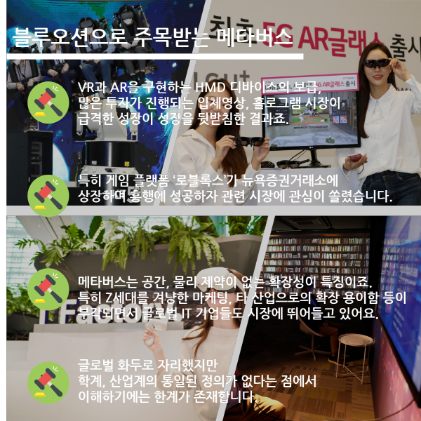 [이지경제 = 이민섭 기자] 현실의 나를 대리하는 아바타로 일상, 경제 생활을 영위하는 3D 기반의 가상세계를 의미하는 메타버스. 가상을 의미하는 Meta와세계를 의미하는 Universe의 합성어죠. 1992년 출간된 소설 ‘스노 크래시’속 가상 세계 명칭에서 유래했습니다.