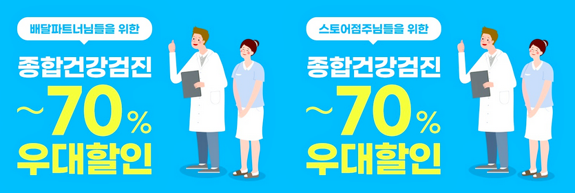 이에 따라 배달원와 입점업체 점주들이 간기능, 고지혈증, 신장기능, 갑상선, 간염, 당뇨, 빈혈 등에 대한 혈액종합검사와 위내시경검사, 대장내시경(또는 뇌, 요추, 경추, 관상동맥 CT 선택), 초음파 검사 등 대기업 임직원 수준의 종합건강검진을 착한 가격으로 받을 수 있다.