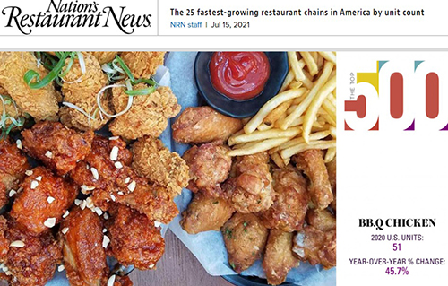 글로벌 외식업 전문지 네이션스 레스토랑 뉴스가 발표한 ‘미국 내 가장 빠르게 성장한 외식 브랜드 25위’에서 BBQ는 5위를 차지했다.