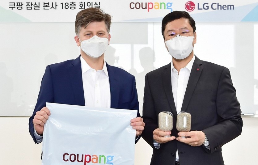 쿠팡은 LG화학과 손잡고 플라스틱폐기물 재활용 프로그램을 시범 운영한다는 내용의 양해각서(MOU)를 9일 체결했다고 이날 밝혔다.