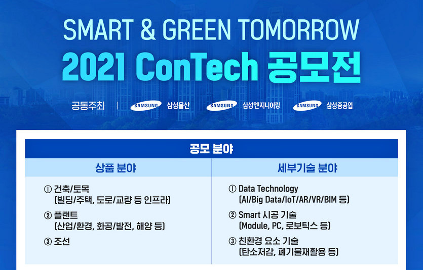 삼성물산 관계자는 “이번 공모전은 데이터 기술, 친환경, 에너지 등 EPC 융복합 기술 발전에 대한 새로운 장이 될 것이다. 중소중견기업을 비롯해 대학과 연구기관 등과 동반성장을 이루겠다”고 말했다.