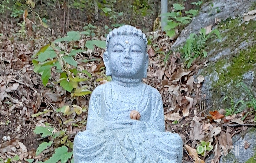 [이지경제=김진이 기자] 지난주 카메라에 담았다. 남한산성도립고원 경기도 성남시 구간에서다. 이곳 7부 능선쯤 있는 약사사에 오르는 길 한편에는 부처와 보살 등의 석상이 있다. 사진=김진이 기자 다만, 중간중간 석상은 누가 떼어갔는지 돌이 자리를 차지하고 있다. 사진=김진이 기자 때를 잊은 메뚜기가 석상을 지키고 있는 듯 하다. 사진=김진이 기자