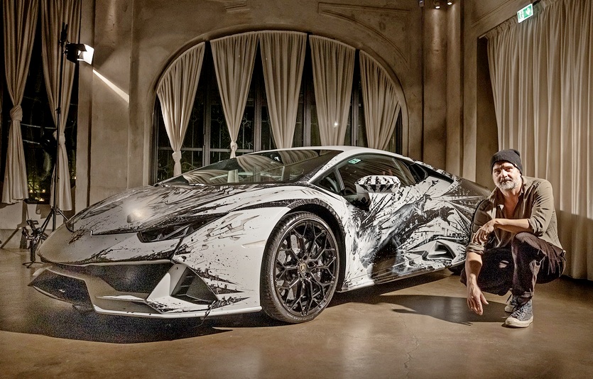 그는 람보르기니의 상징인 황소, 남성, ‘불굴의 힘’을 상징하는 미노타우로스 신화를 융합해 탄생한 우라칸 에보를 예술작품으로 만들었다. 이번 미노타우로스의 측면에는 초자연적이고 동물적인 힘을 뿜어내는 남자의 형상이, 엔진룸 덮개에는 육과 꽉 쥐어진 주먹을 강조한 팔이 각각 그려져 있다.