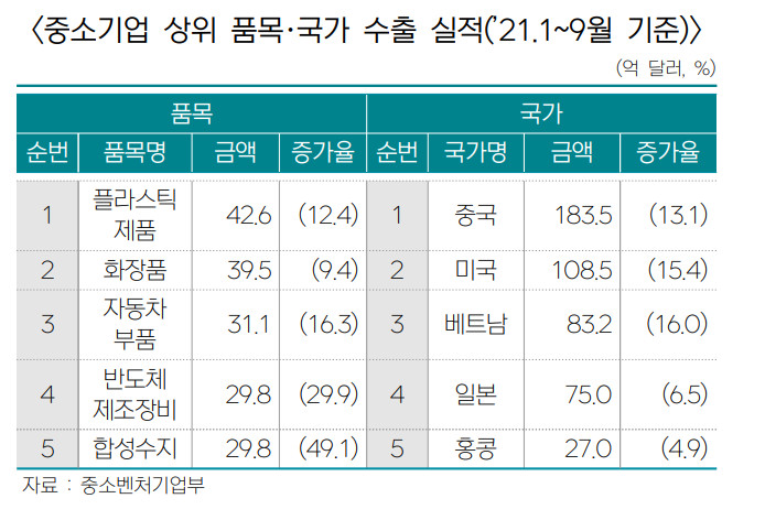 중소기업 수출은 지난달 29일 역대 최고인 2018년 실적 1052억달러를 돌파하며 코로나19 이전의 성과를 넘었다.