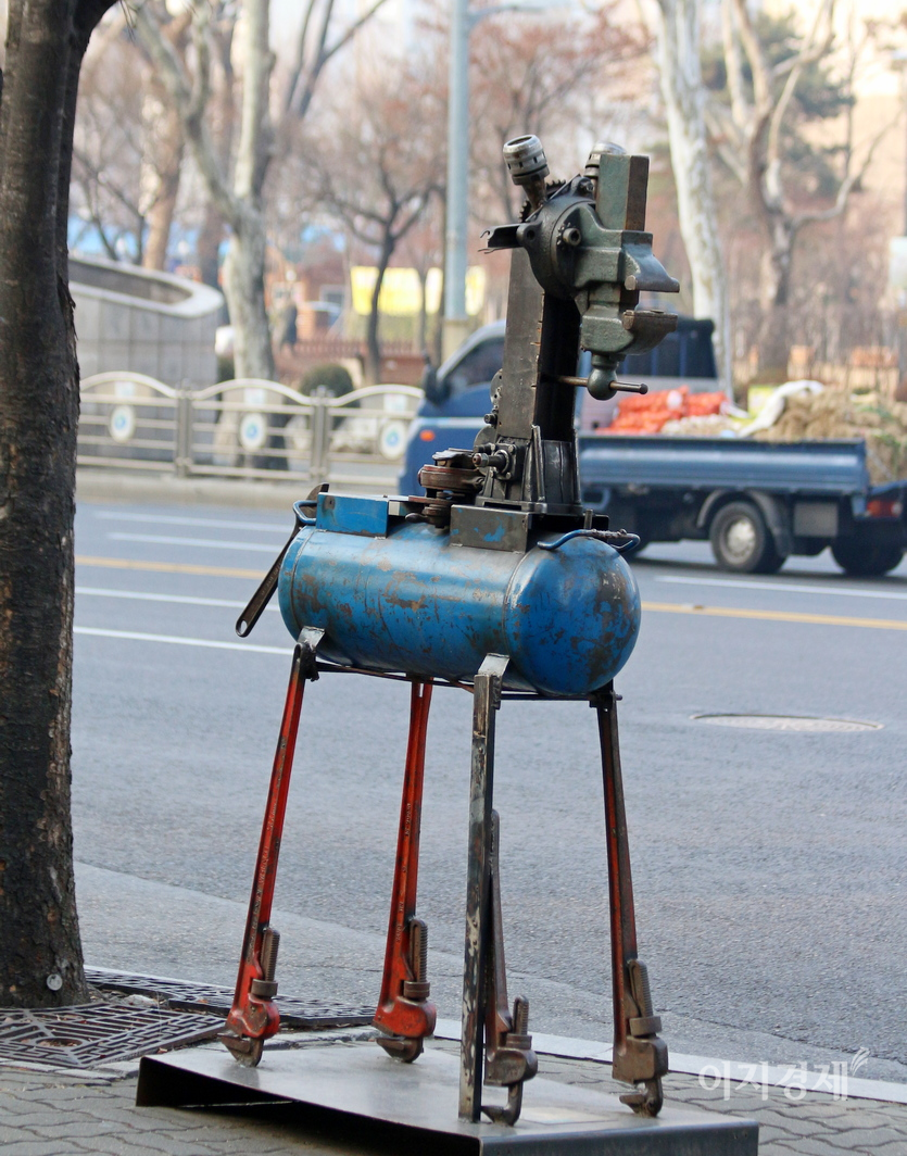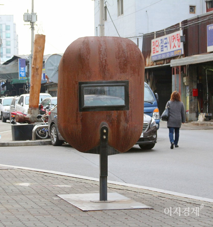 서울시 영등포구 문래동에서 잡았다. 문래동의 경우 종전 철을 소재로 하는 용접 등 소규모 업체가 많았지만, 최근 문래 장착촌 등이 들어서며 철을 이용한 조형물이 지역 곳곳을 장식하고 있다. 사진=정윤서 기자