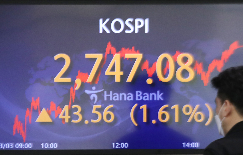 [이지경제=김진이 기자] 3일 코스피지수는 전날보다 26.34포인트(0.97%) 오른 2729.86에 출발한 이후 전날보다 43.56포인트(1.61%) 오른 2747.08에 장을 마감했다.