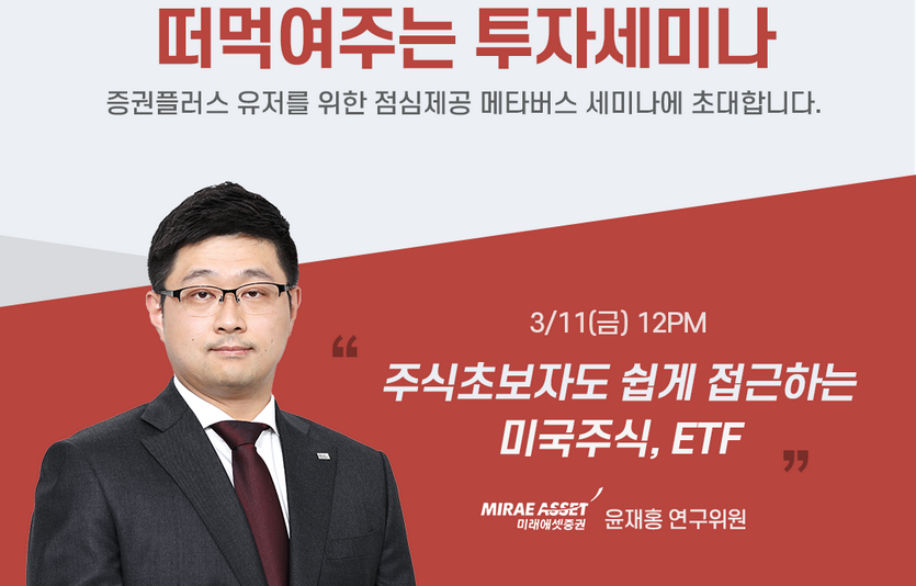 이번 연수회는 직장인들을 위해 점심시간 동안 두나무의 메타버스 플랫폼에서 진행되며, 윤재홍 미래에셋증권 디지털리서치팀 연구위원이 ‘주식 초보자도 쉽게 접근하는 미국 주식과 ETF’에 대해 다룬다.
