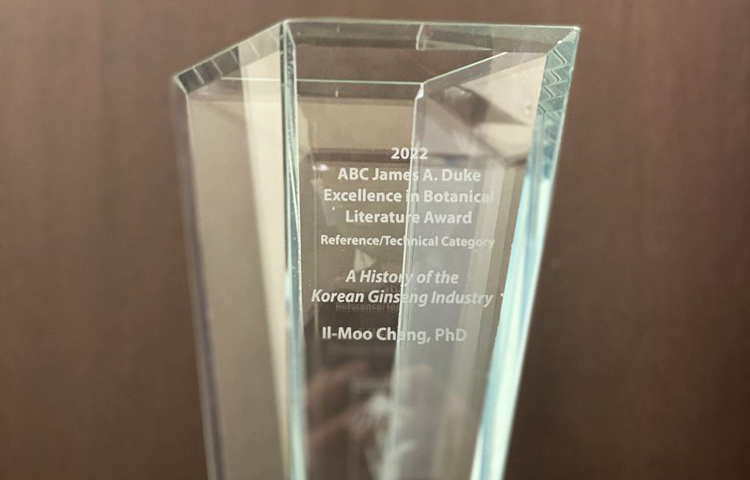 [이지경제=이지뉴스] KGC인삼공사 R&D본부장을 역임한 장일무 서울대 명예교수가 ‘한국인삼산업사’ 영문판으로 미국 경제식물 협의회가 수여하는 최우수 저작상인 ‘2021년도 듀크상’을 수상했다.
