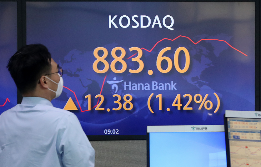 코스닥지수는 전날대비 10.67포인트(1.22%) 오른 881.89에서 출발해서 1%가 넘는 강세를 이어가고 있다.