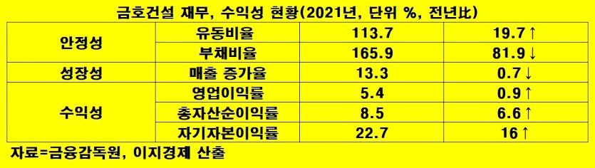 이로써 금호건설은 코로나19 정국 2년을 포함해 2018년부터 성장성을 유지하게 됐다.