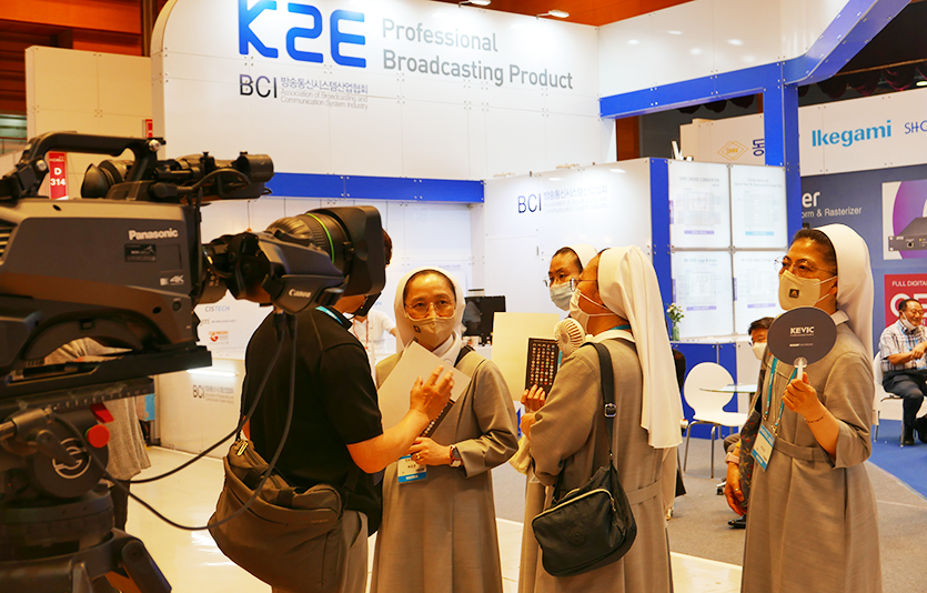 영상산업이 다양한 분야로 확대되고 있다는 것을 증명이라고 하듯, 각계각층의 참관객들이 전시회를 방문했다. 카메라 브랜드 ‘캐논’ 부스에서 제품 설명을 듣고 있는 수녀님들.