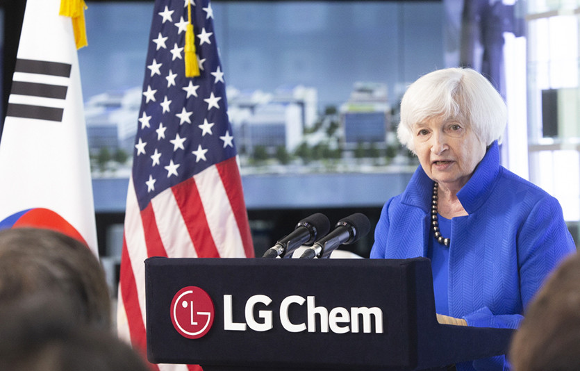 인도·태평양 지역을 순방 중인 옐런 장관은 한국 기업 중 유일하게 LG화학을 찾았다. LG사이언스파크 마곡 R&D캠퍼스에는 LG화학의 차세대 양극재와 분리막 등 미래 전지 소재 연구 시설이 모여 있다.
