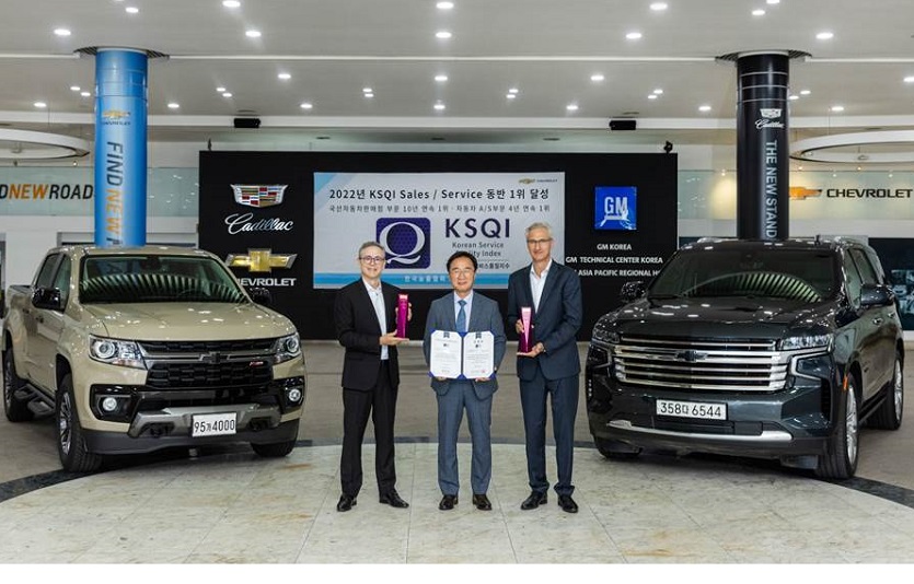 [이지경제=윤현옥 기자] 한국지엠이 한국능률협회컨설팅(KMAC)이 주관한 ‘2022년 한국산업의 서비스 품질지수(KSQI: Korean Service Quality Index)’의 ‘국산자동차판매점’ 부문과 ‘AS’부문 1위에 올랐다.