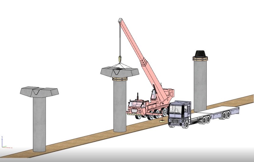 현대건설은 교량의 하부구조를 구성하고 있는 피어캡(기둥위에 설치돼 상부구조를 지지하는 구조물)과 기둥을 포함, 교량의 하부구조 전체를 PC공법으로 제작할 수 있는 조립식 교각시스템을 개발하고 실물 모형에 대한 구조성능실험을 성공적으로 완료했다.