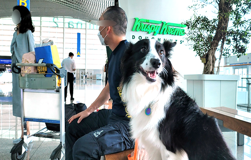 기자가 인천공항에서 본 보더콜리 한 마리는 행인들에게 사납게 짖어대고 있었다.