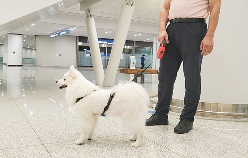 8일 사람들이 많이 모이는 인천국제공항에서도 입마개를 착용한 개는 보이지 않았다.