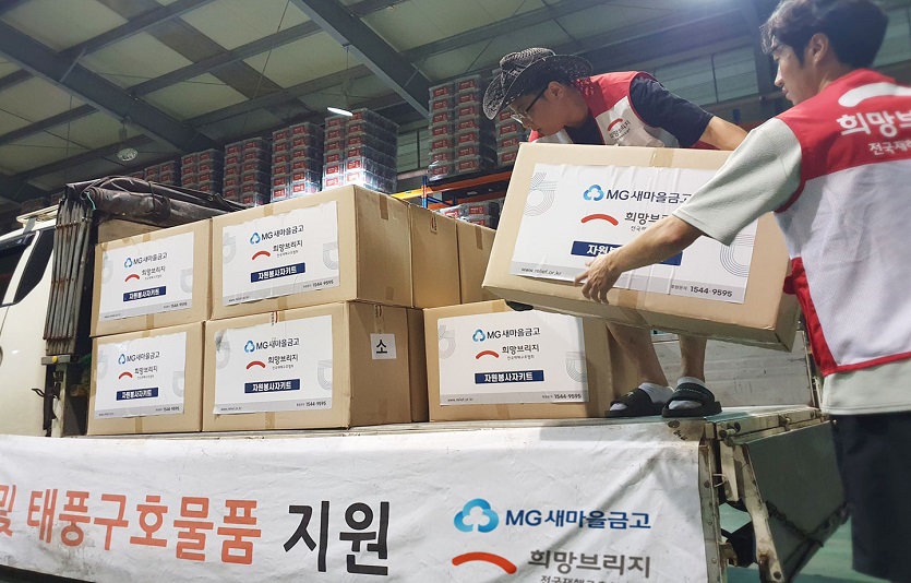새마을금고는 피해 지역의 조속한 복구를 위해 전국재해구호협회와 손잡고 사전 제작한 자원봉사자 키트 1000여개를 현장에 긴급 지원했다. 키트는 재해·재난 현장에서 봉사활동을 펼치시는 분들에게 필요한 우의, 장갑, 장화 등 10개의 자원봉사 물품으로 구성됐다.