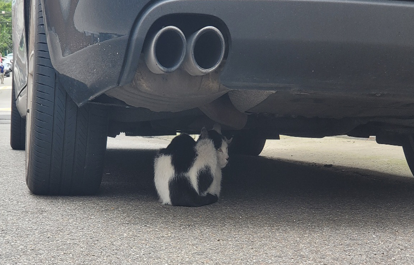 운전자가 밥을 먹던 고양이를 보지 못해 차로 치거나, 겨울철이라면 따뜻한 엔진으로 기어들어가 사고를 낼 가능성이 높은 자리였다.
