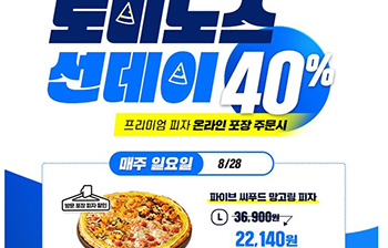 온라인회원을 대상으로 방문 포장 주문 시 프리미엄 피자(M, L 사이즈) 40% 할인 혜택을 제공하는 행사다.