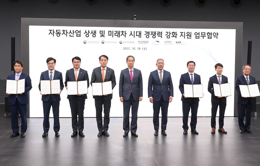 중소벤처기업부(장관 이영)는 19일 현대자동차그룹(사장 공영운), 자동차부품산업진흥재단(이사장 오원석) 등과 ‘자동차산업 상생 및 미래차 시대 경쟁력 강화 지원’을 위한 新동반성장 협약을 체결했다.