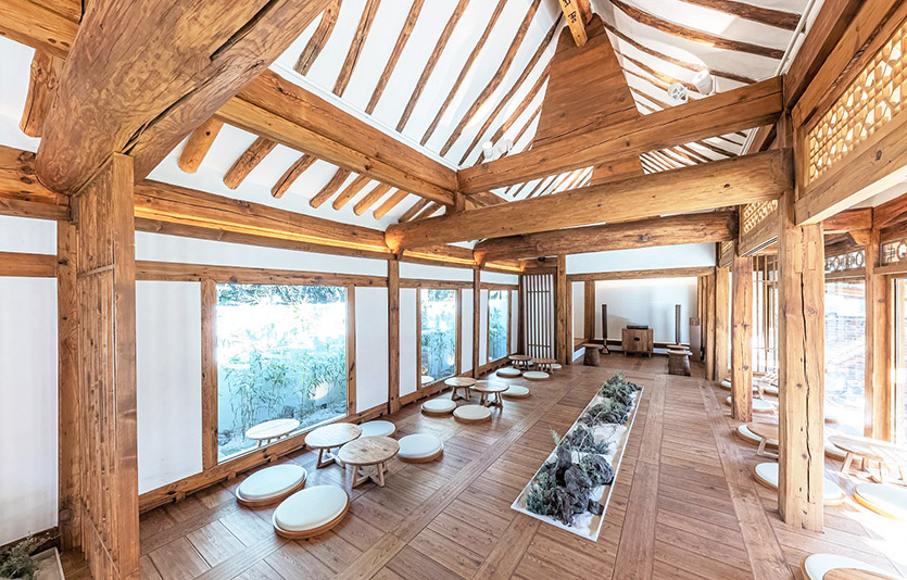 지붕 서까래, 대들보, 기둥, 마루, 외관 등 본래의 고택 한옥을 최대한 보존해 아늑하면서도 현대적인 경험을 제공하는 매장으로 선보였다.