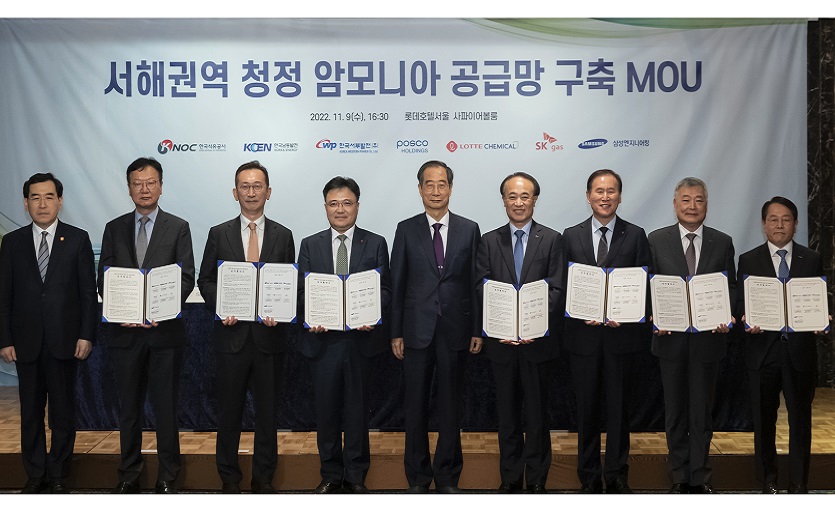 [이지경제=이승렬 기자] 삼성엔지니어링과 한국석유공사, 남동발전, 서부발전, 포스코홀딩스, 롯데, SK가스 등 7개사는 9일, 롯데호텔 서울에서 ‘서해권역 청정 암모니아 공급망 구축을 위한 상호협력에 관한 업무협약’을 체결했다고 10일 밝혔다.