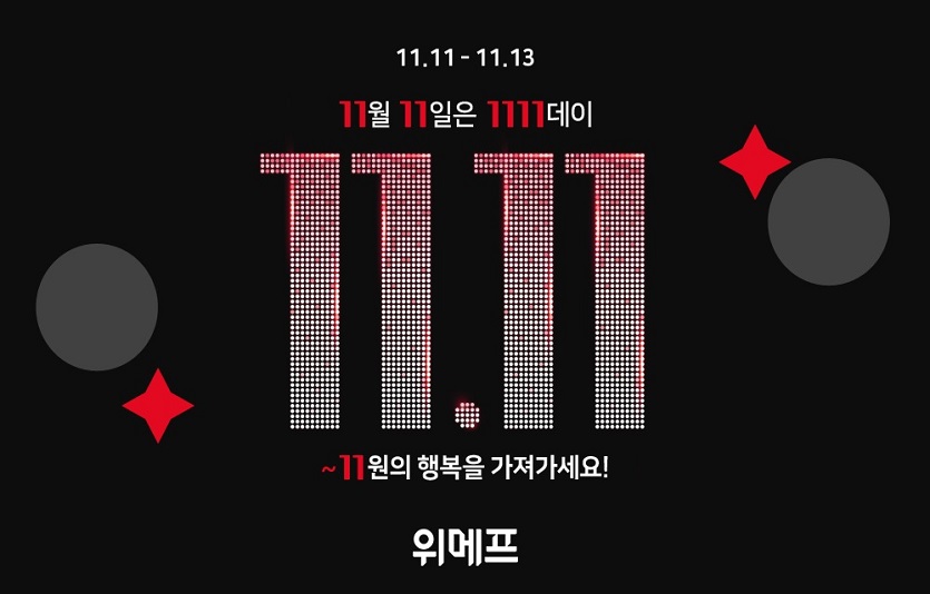 [이지경제=윤현옥 기자] 위페프와 11번가가 11월 11일을 기점으로 대대적인 쇼핑행사를 진행한다. 연중 최대행사로 대대적인 할인율을 적용하고 핫딜상품을 대거 마련해 눈길을 끈다.