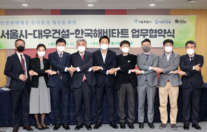 대우건설은 이날 울특별시, 한국해비타트와 주거안전 취약계층의 주거환경 개선을 위한 업무 협약을 체결했다.