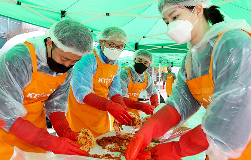 KT&G는 취약계층의 따뜻한 겨울나기를 지원하는 ‘연말 김장김치 나눔 행사’를 진행했다고 23일 밝혔다.