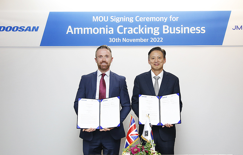 두산에너빌리티는 영국 암모니아 크래킹 솔루션 업체 존슨 매티(JM)와 ‘암모니아 크래킹 사업 협력을 위한 업무협약(MOU)’을 체결했다고 1일 밝혔다.