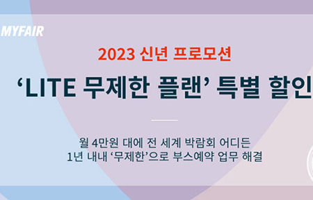 [이지경제=김성미 기자] 해외전시회 부스예약 플랫폼 마이페어가 부스예약 업무 지원 서비스 ‘Lite 무제한 플랜’을 런칭하고 신년 맞이 특별 프로모션을 진행한다고 15일 밝혔다.
