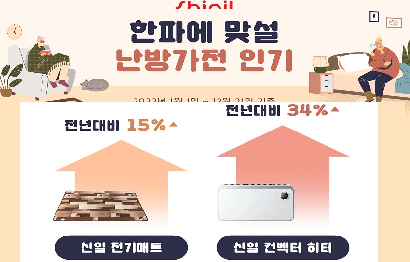 신일전자는 전기매트와 컨벡터 히터가 인기를 끌며 출고량이 크게 늘었다고 22일 밝혔다.
