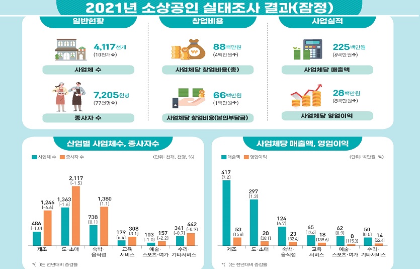중기부ㆍ통계청, ‘2021 소상공인 실태조사’ 잠정 결과 발표