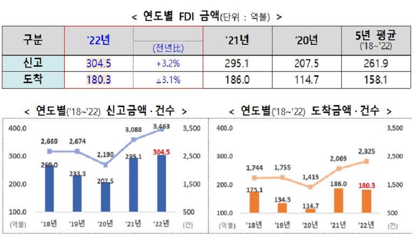 [이지경제=윤현옥 기자] 2022년 외국인직접투자액(FDI)이 사상최대인 305억달러를 달성했다.