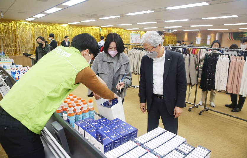 조욱제 사장을 포함한 임직원들은 의류, 액세서리, 소형 가전제품, 생활용품 등 다양한 물품을 기부했다.