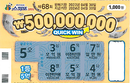 즉석복권 스피또1000 68회차 1등 당첨자는 “금연을 시작하며 담뱃값으로 매일 스피또1000 4장을 담배 대신 구입했다가 1등에 당첨됐다”라며, “내게 이런 행운이 오다니 긴가민가해 한참 동안 복권만 뚫어지게 쳐다봤다”고 소감을 말했다.