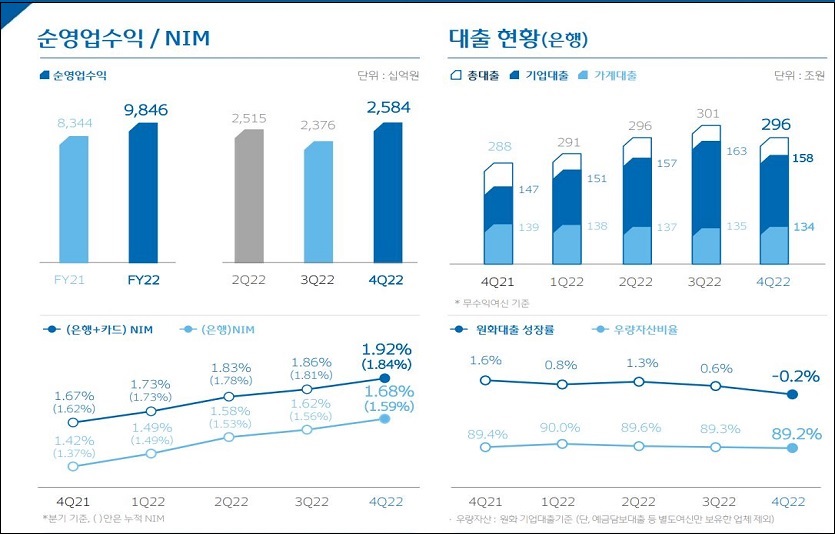 자산건전성 부문은 급격한 금리상승 및 대내외 경기둔화 우려에도 고정이하여신(NPL) 비율 0.31%, 연체율 0.26%로 업계 최저 수준을 유지했다. 우량자산비율과 NPL커버리지비율도 각각 89.2%, 214.2%를 기록했다.