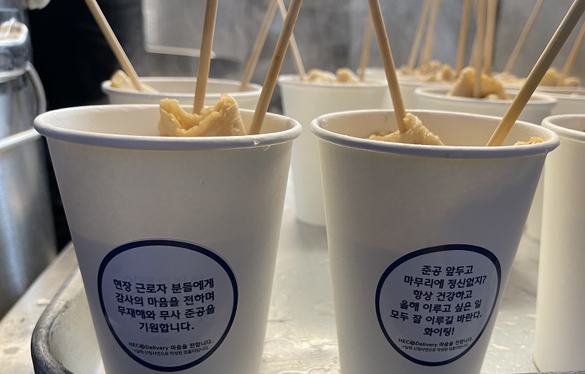 이번 ‘HEC心 Delivery’는 2월10일을 시작으로 17일까지 6일간 진행중이다. 총 86개의 국내 현장에 간식차를 보내 약 1만2500명의 현장 근무자들에게 샌드위치, 컵어묵 등의 간식과 응원 메시지를 전달했다.