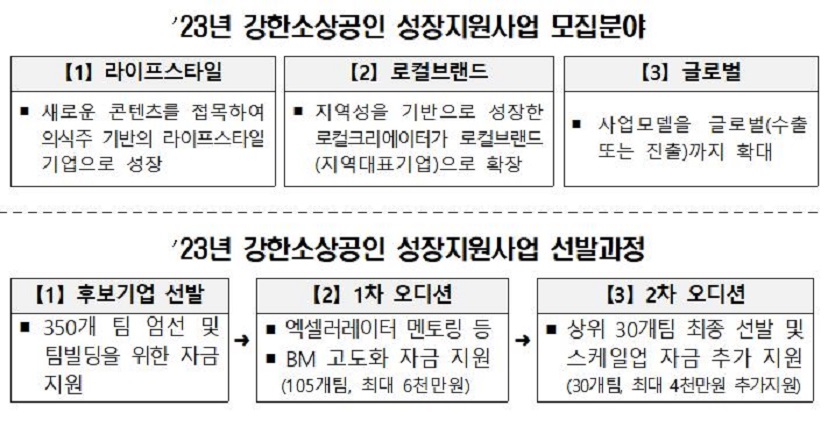 사업신청은 ’23년 강한소상공인 성장지원’ 공식 웹사이트에서 확인하고 접수할 수 있다. 신청 접수 기간은 3월6일부터 24일까지다.