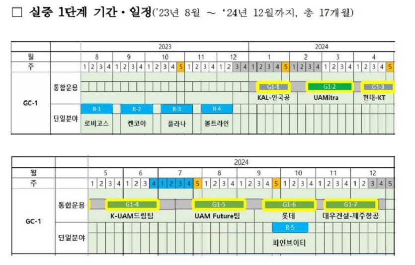 각 컨소시엄과 기업들은 상용화 단계에 적용할 운영 시나리오에 따라 운항자, 교통관리 사업자, 버티포트 운영자 간의 통합운용 안정성을 실증하고 도심 진입범위를 결정하기 위한 소음 등도 측정할 예정이다.