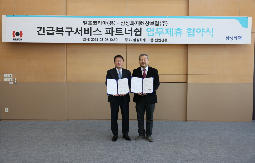 삼성화재가 벨포코리아와 ‘긴급복구서비스 파트너십’에 관한 업무협약을 체결했다.