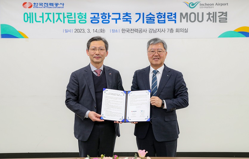 인천국제공항공사(사장 김경욱)와 한국전력공사(사장 정승일)가 최근 인천공항의 재생에너지 활용 증대를 골자로 하는 ‘에너지자립형 공항 구축을 위한 기술협력 양해각서(MOU)’를 체결했다고 밝혔다.