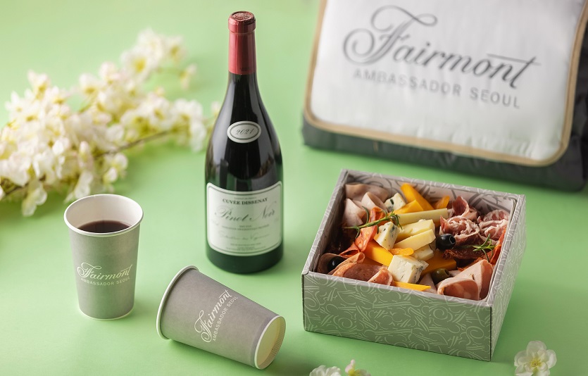 피크닉 세트에는 페어몬트 피크닉 매트가 기본으로 포함되어 있고, 레드 와인 1병과 샤퀴테리 세트도 함께 제공된다. 샤퀴테리 세트에는 와인 안주로 찰떡궁합인 다양한 콜드 컷과 치즈, 그리고 같이 곁들어 먹을 수 있는 바게트를 제공해 벚꽃을 바라보며 여의도 한강 공원에서 친구 및 연인과 낭만적인 봄 피크닉을 즐기거나 객실에서 프라이빗하고 여유롭게 시간을 보낼 수 있다.